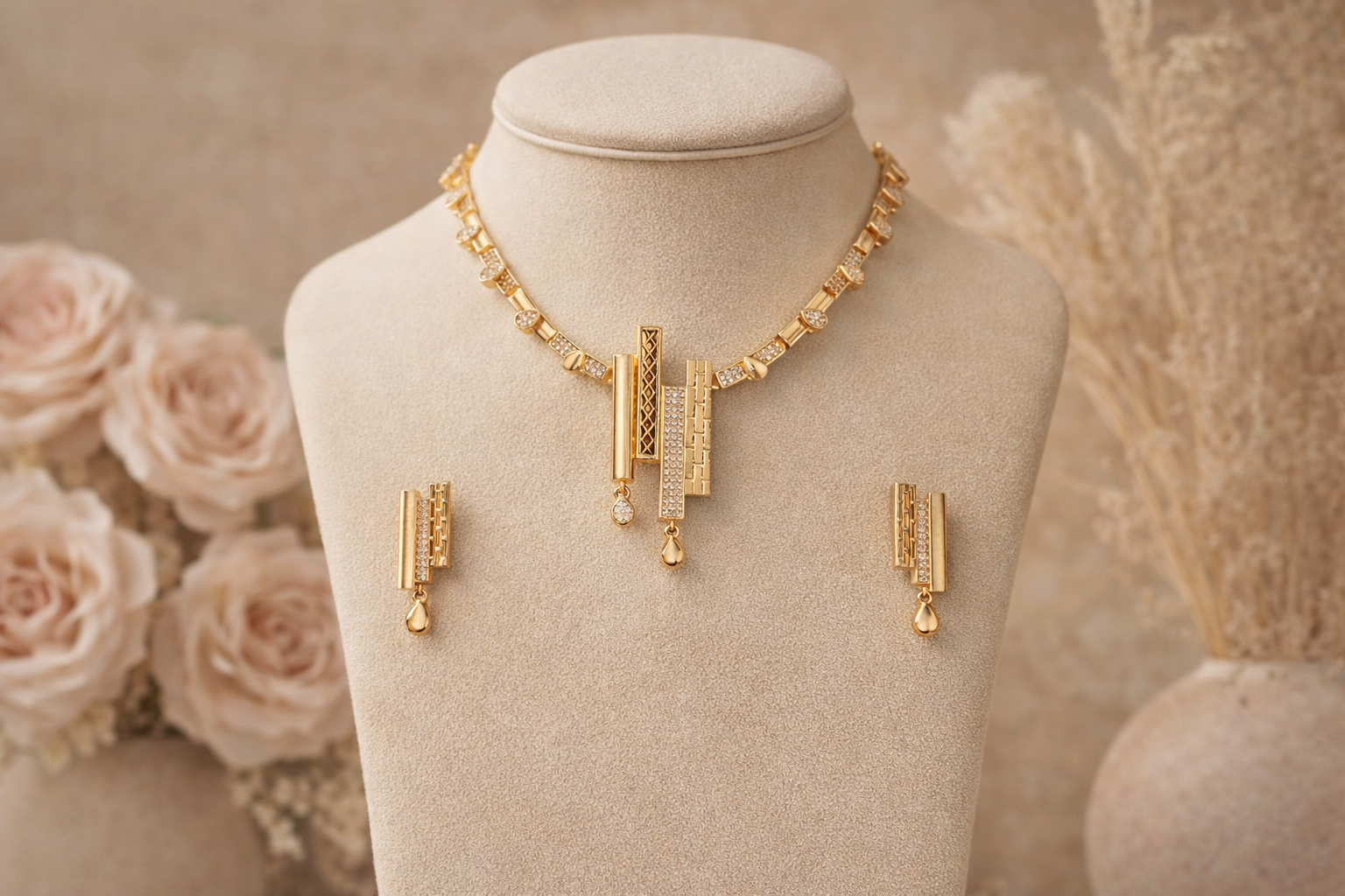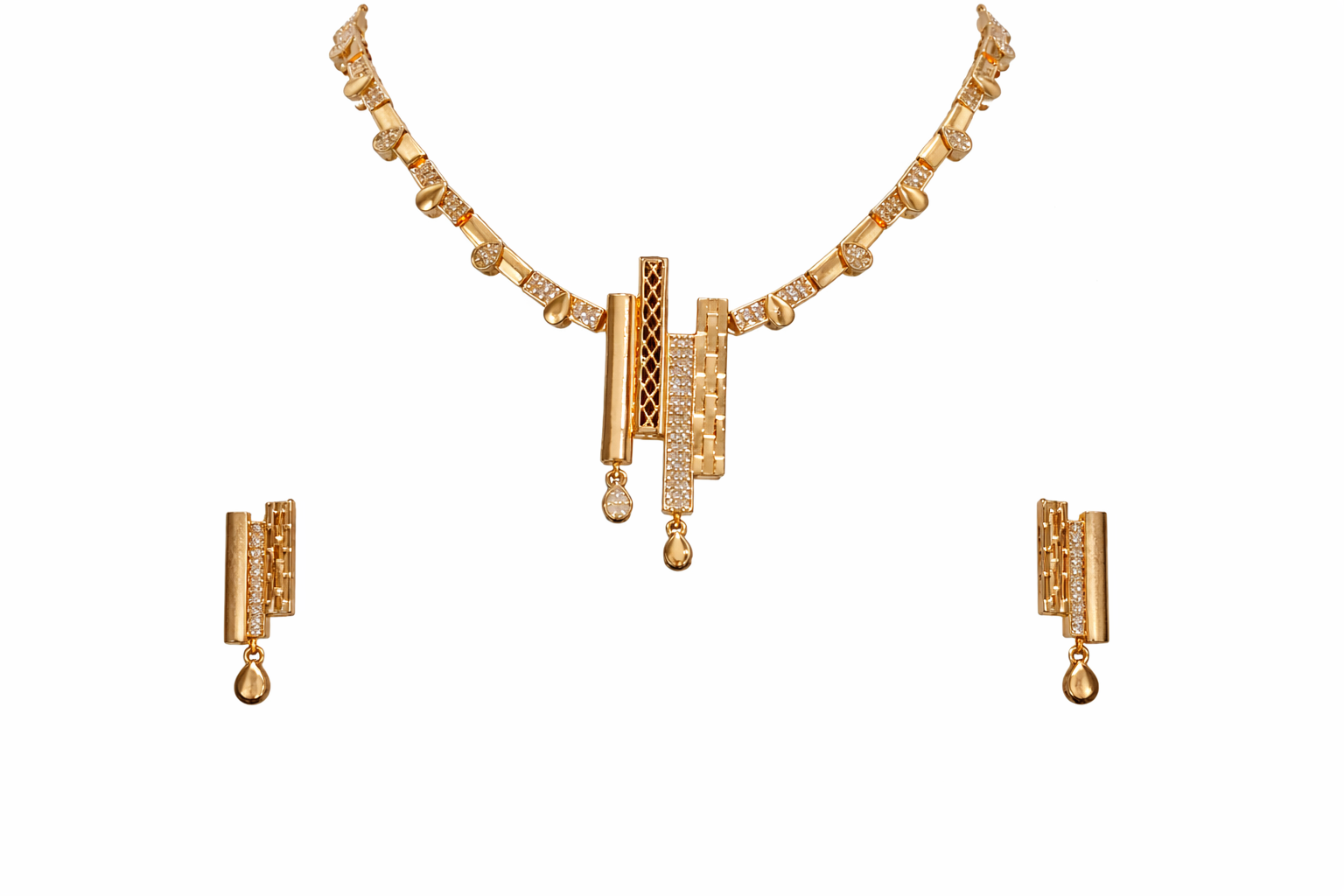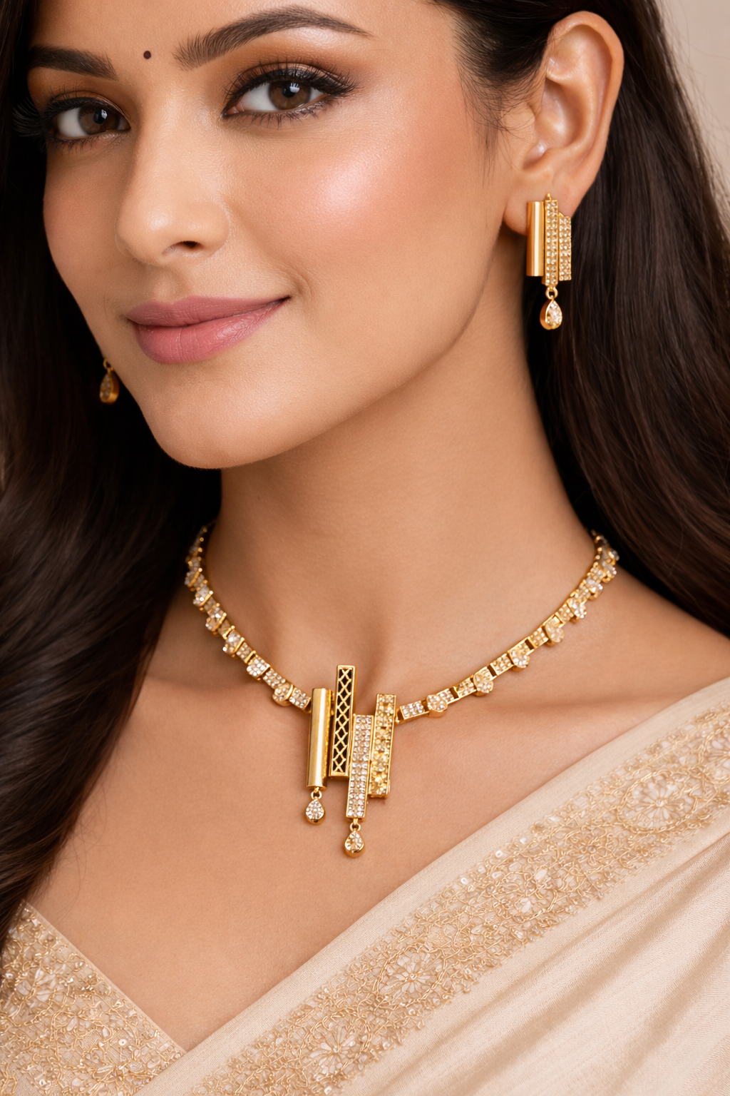 Arira Gold finish Stylish and Classy American Diamond Necklace Set with Earrings
