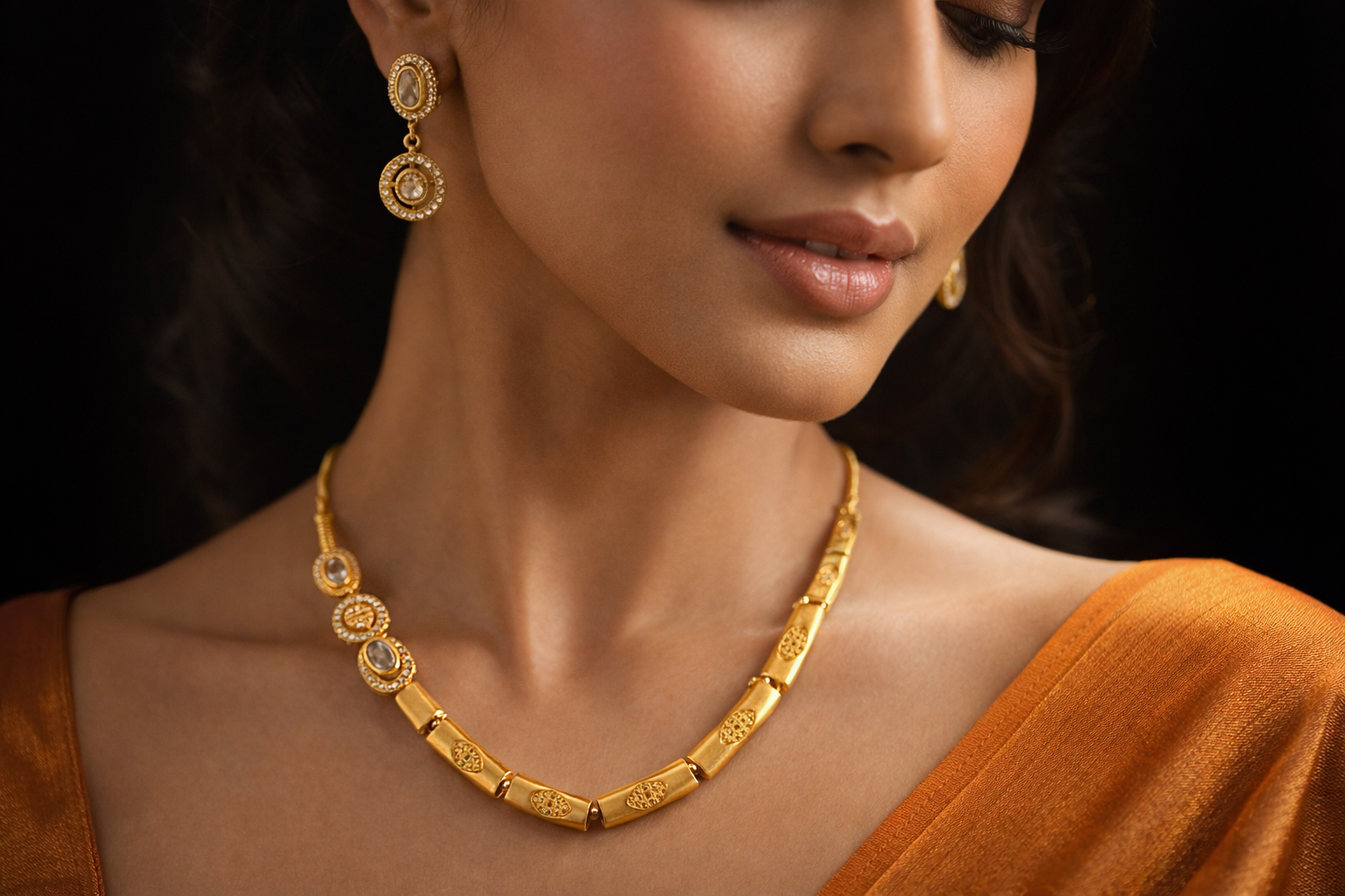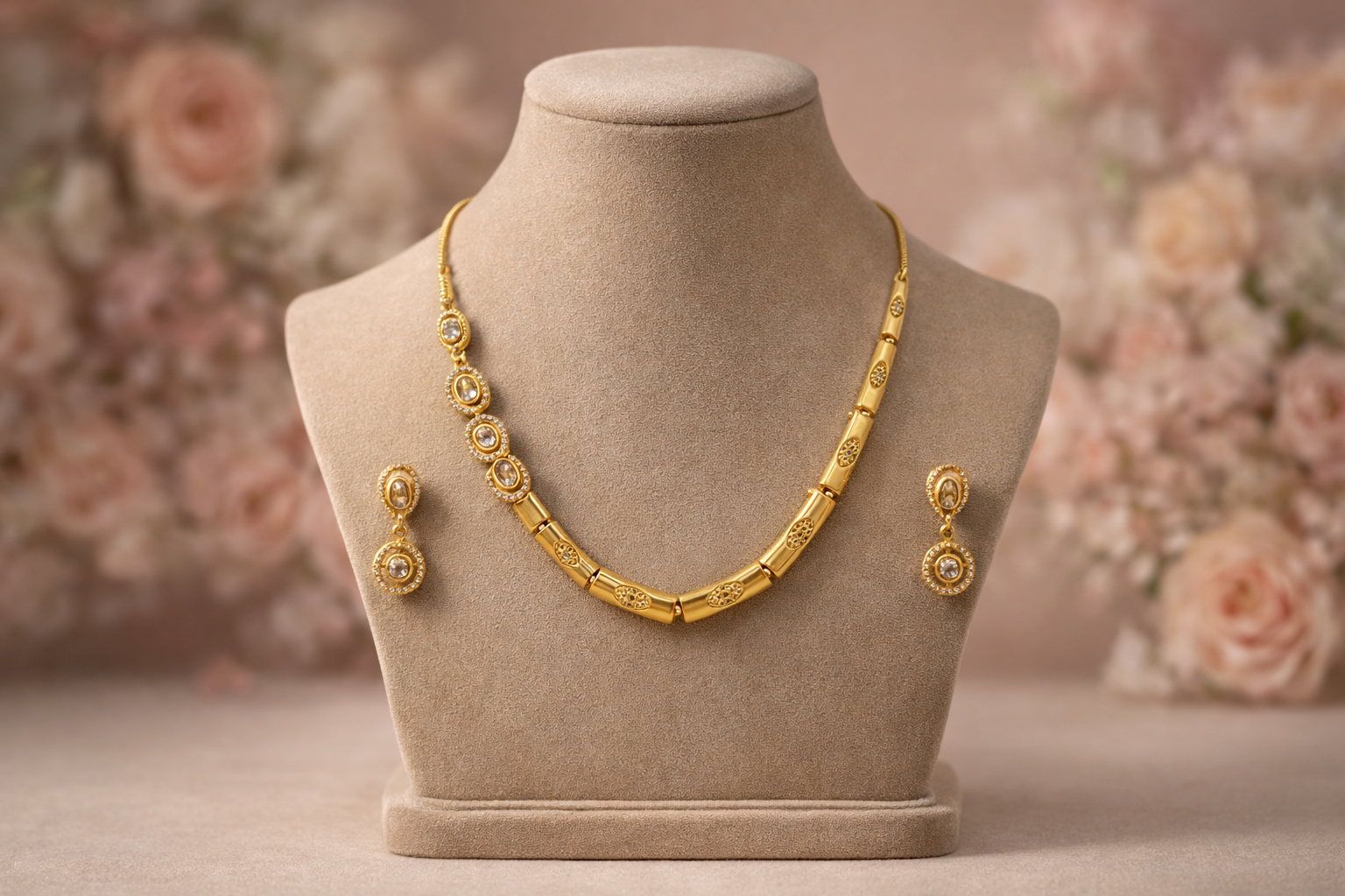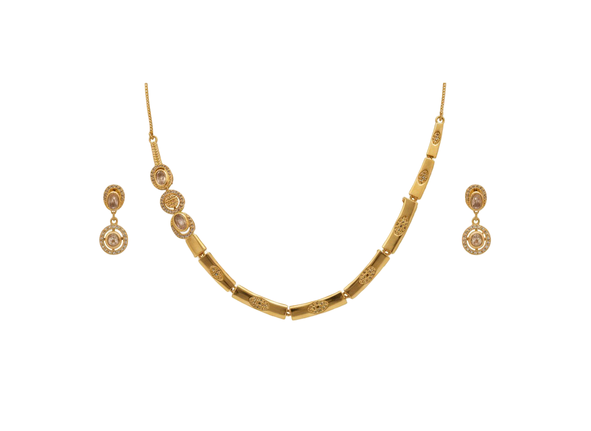 Be the first to review “Arira Golden Finish White Stone Anti Tarnish American Diamond Elegant Necklace with Earrings”