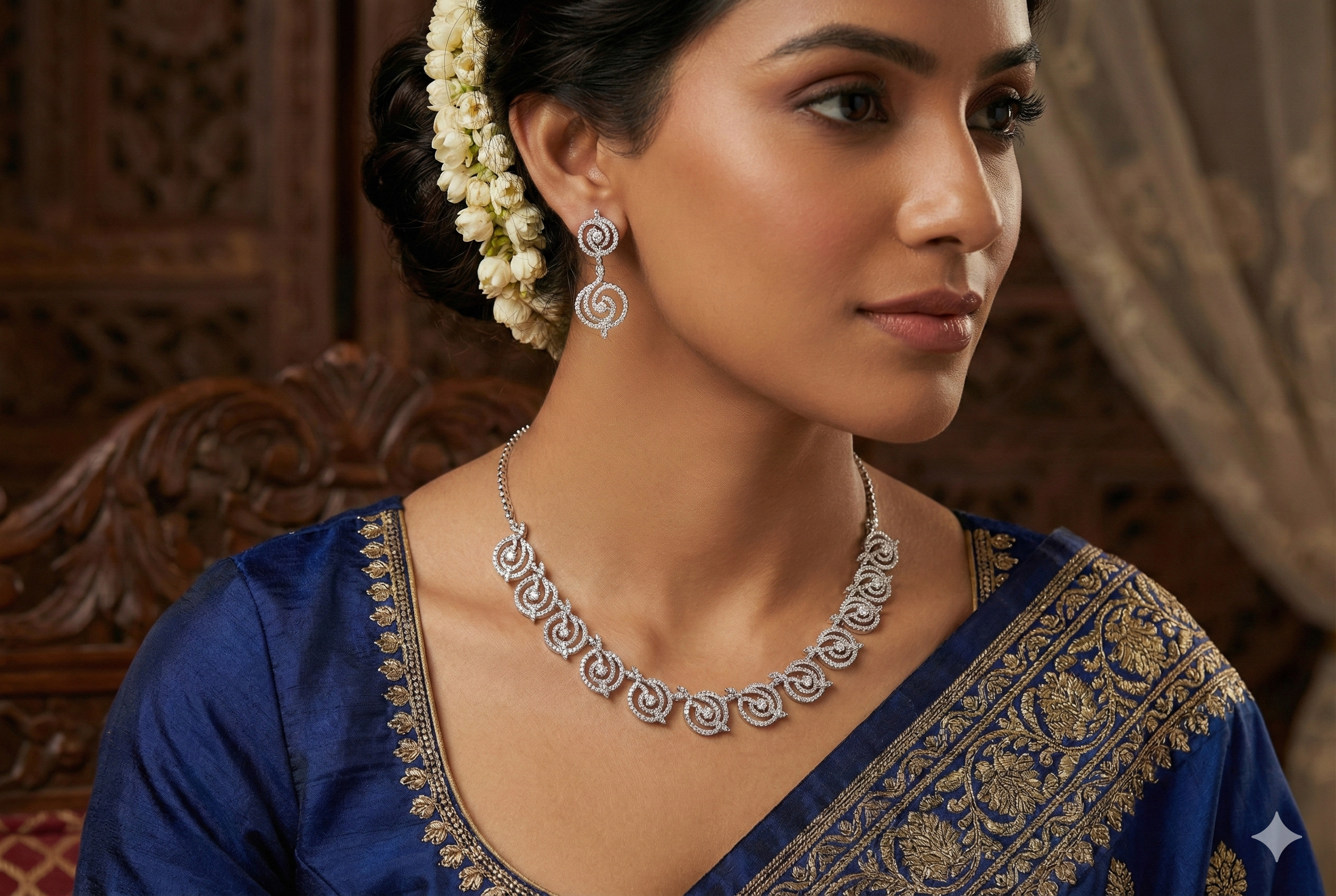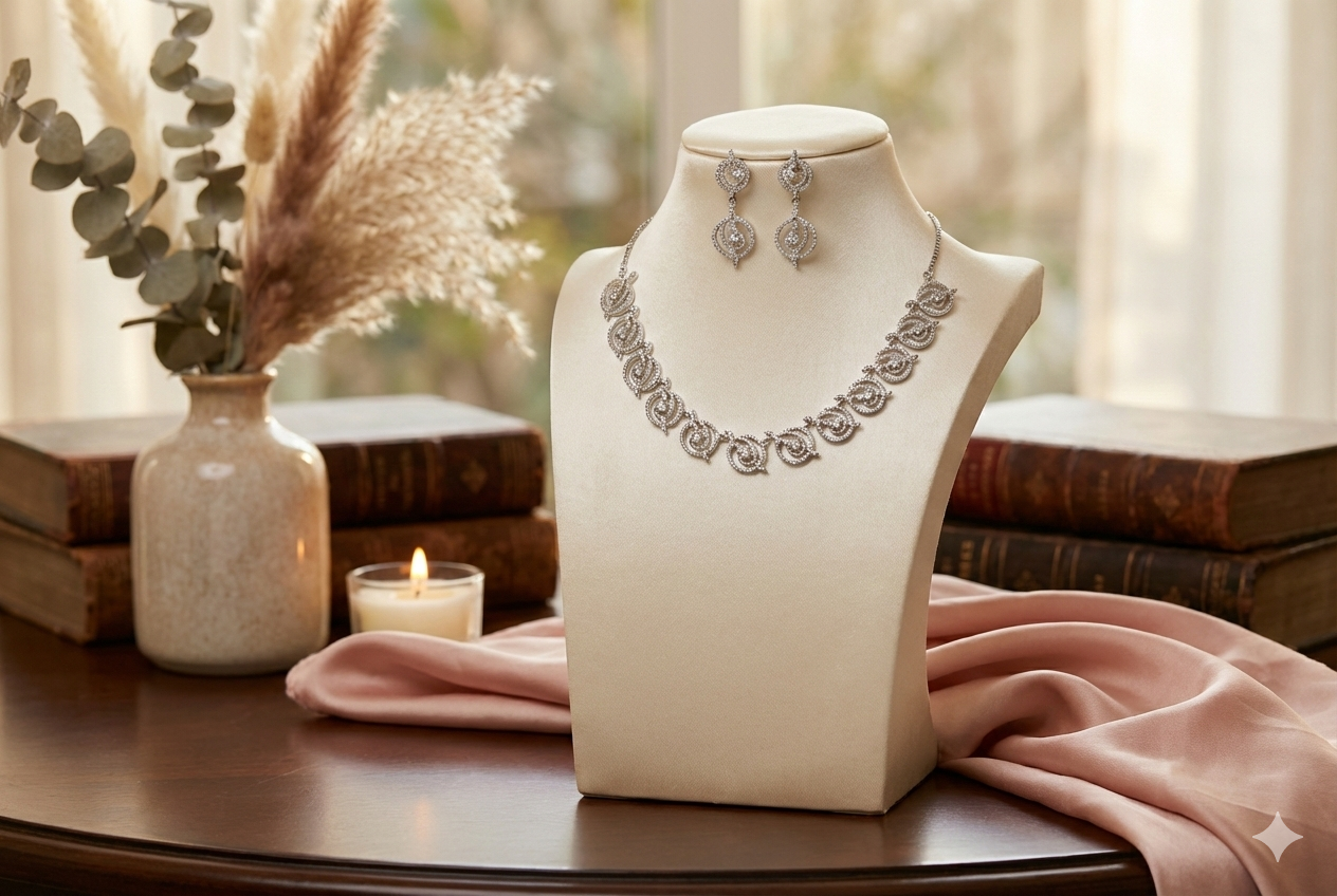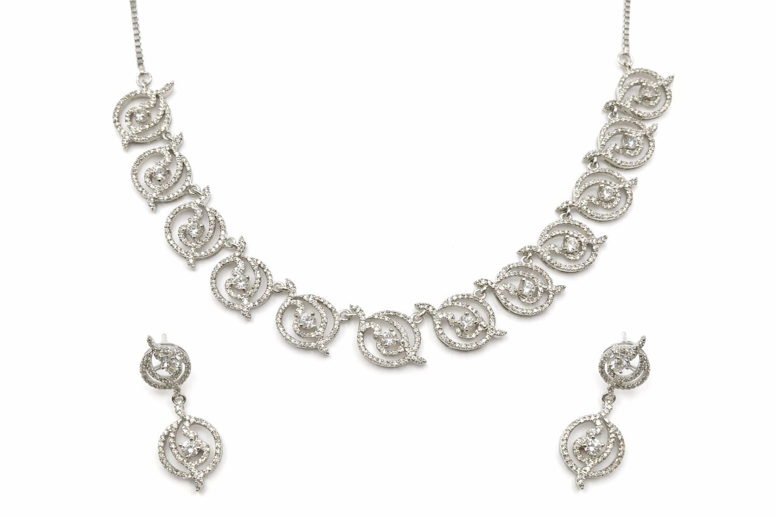 Be the first to review “Arira Silver Finish Amazing Style White Stone American Diamond Set with Earrings”