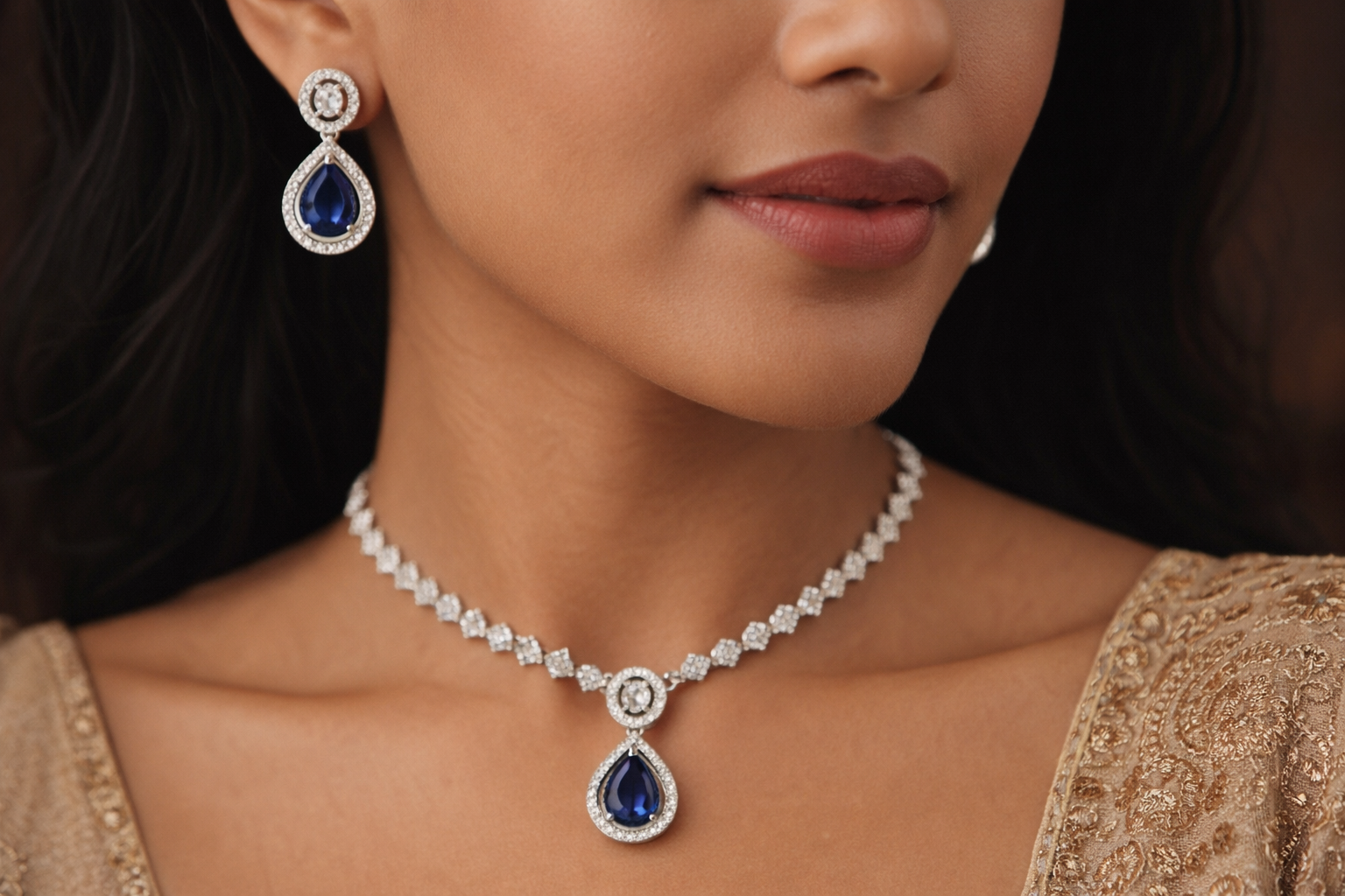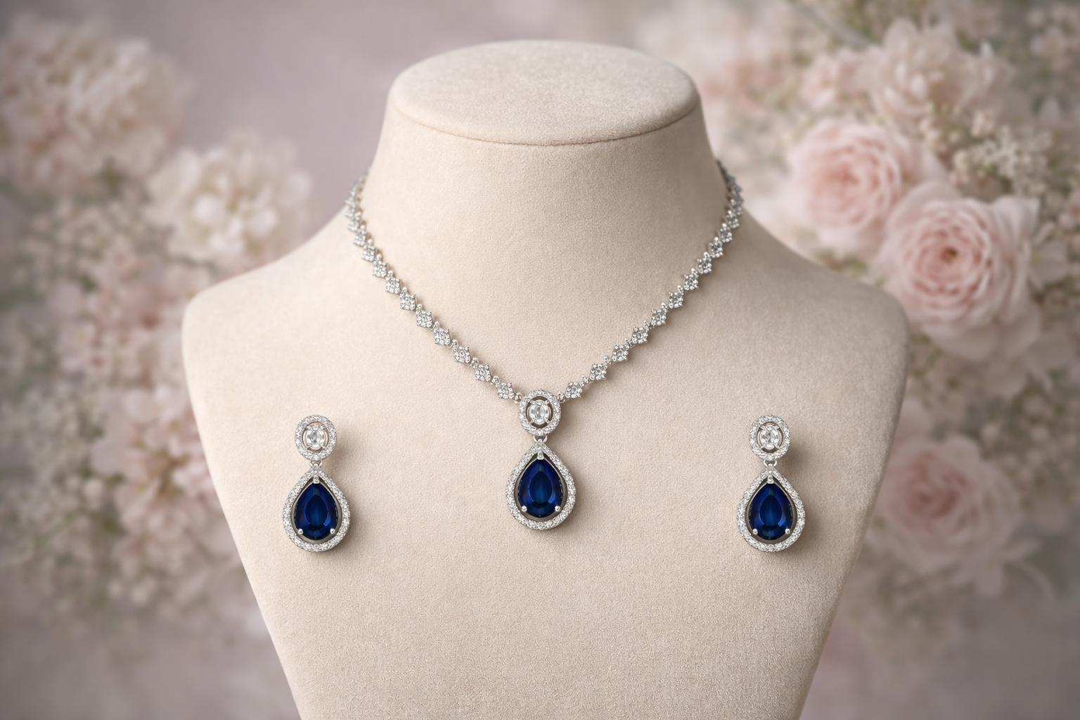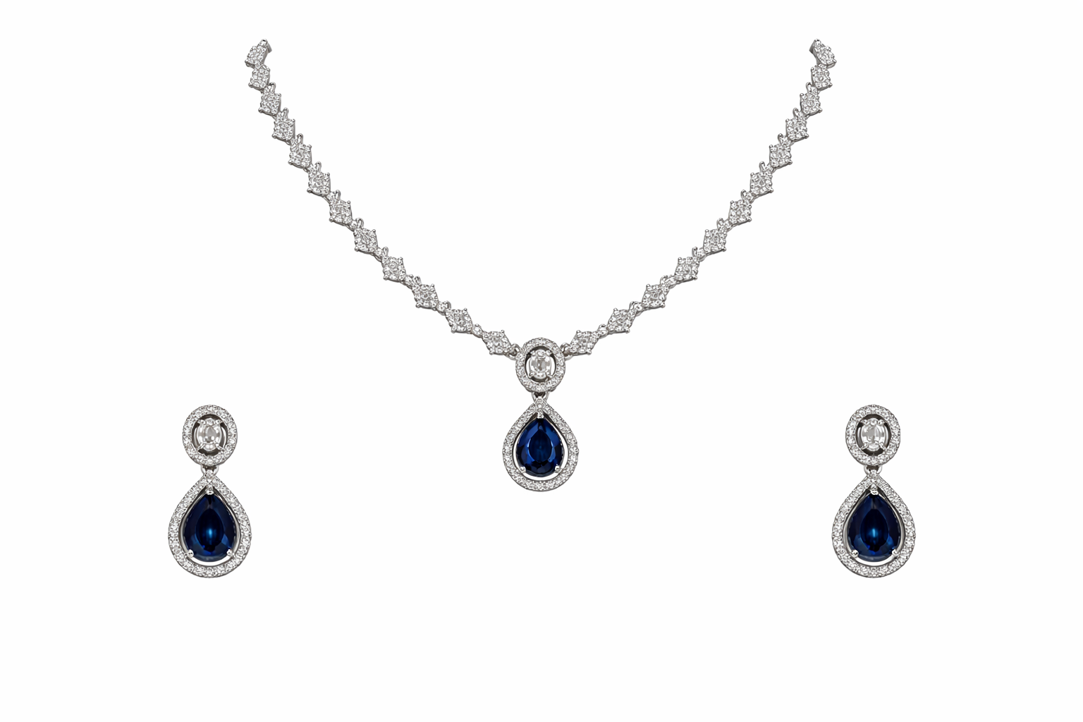 Be the first to review “Arira Silver Finish Stylish And Classy Blue Stone with White Stones American Diamond Set with Earrings”