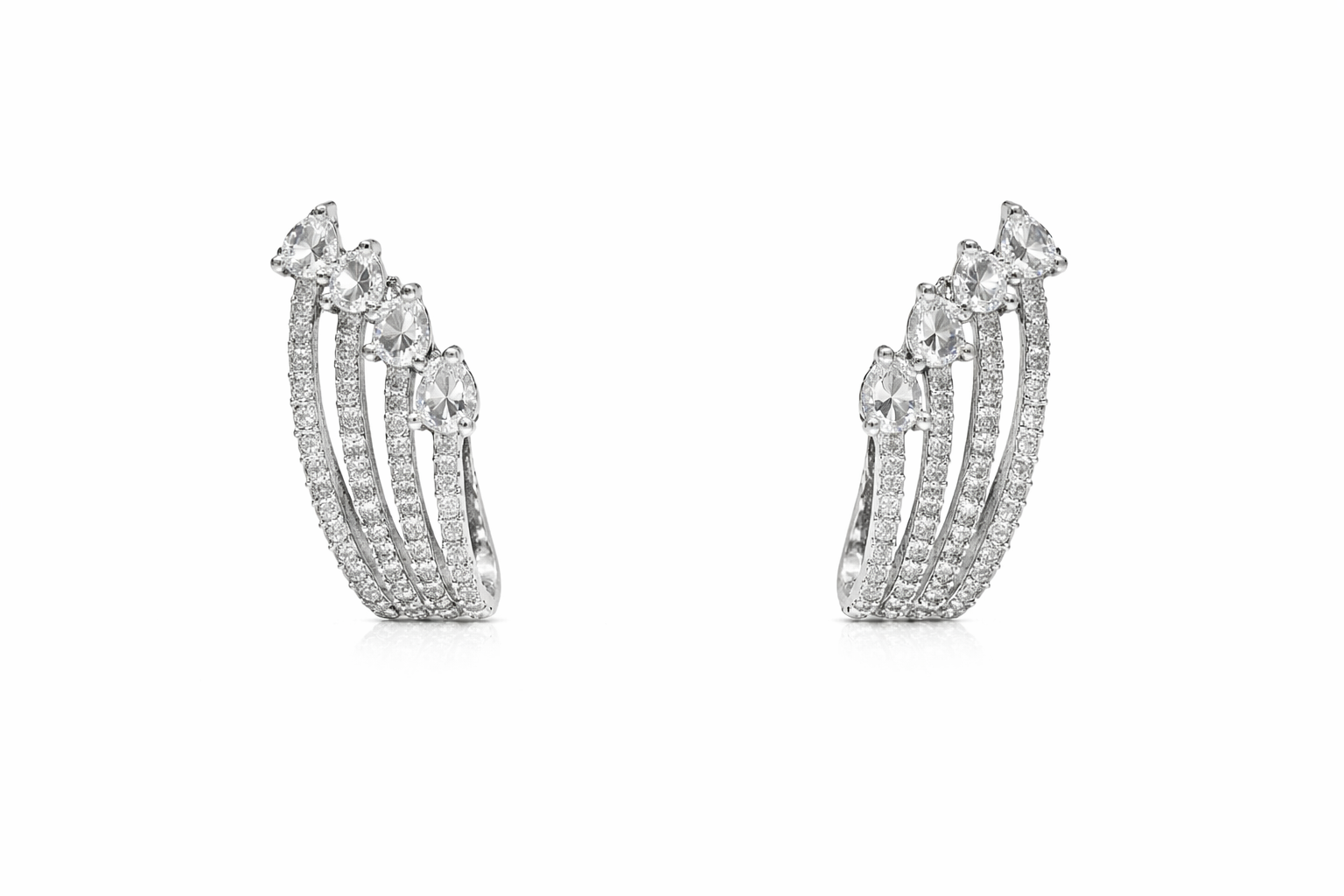 Arira Silver Finish Party Wear Stylish American Diamond Earrings