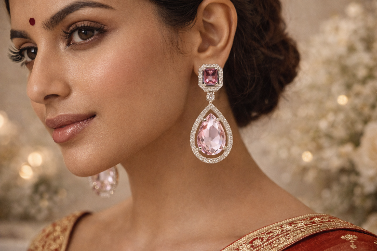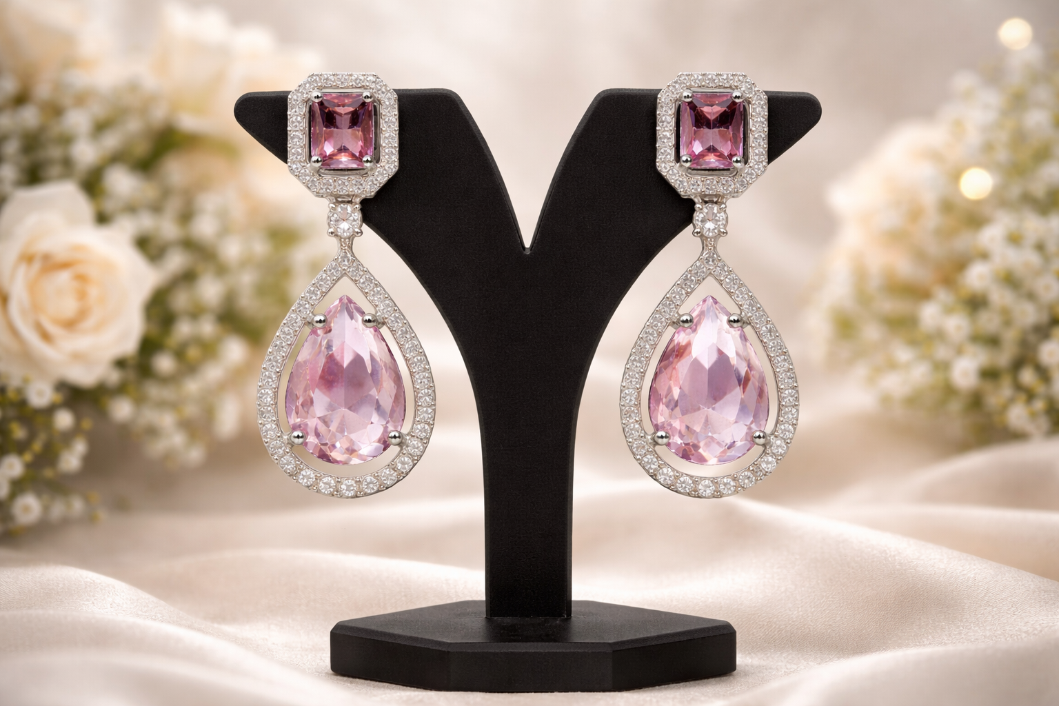 Be the first to review “Arira Silver Finish with Pink Stones Beautiful and Elegant American Diamond Earrings”