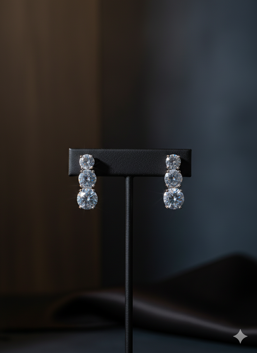 Be the first to review “Arira 3 stone silver droplet earrings”