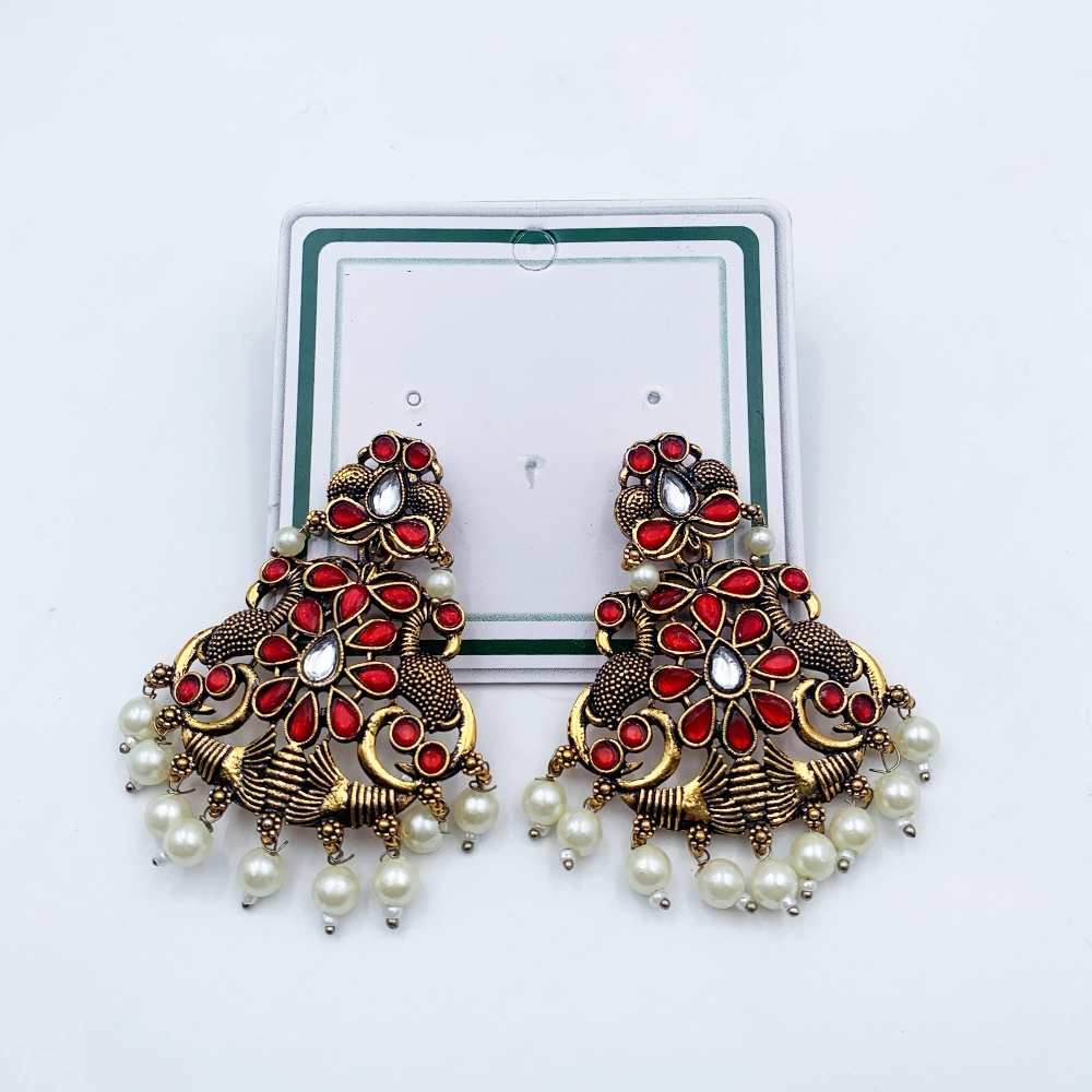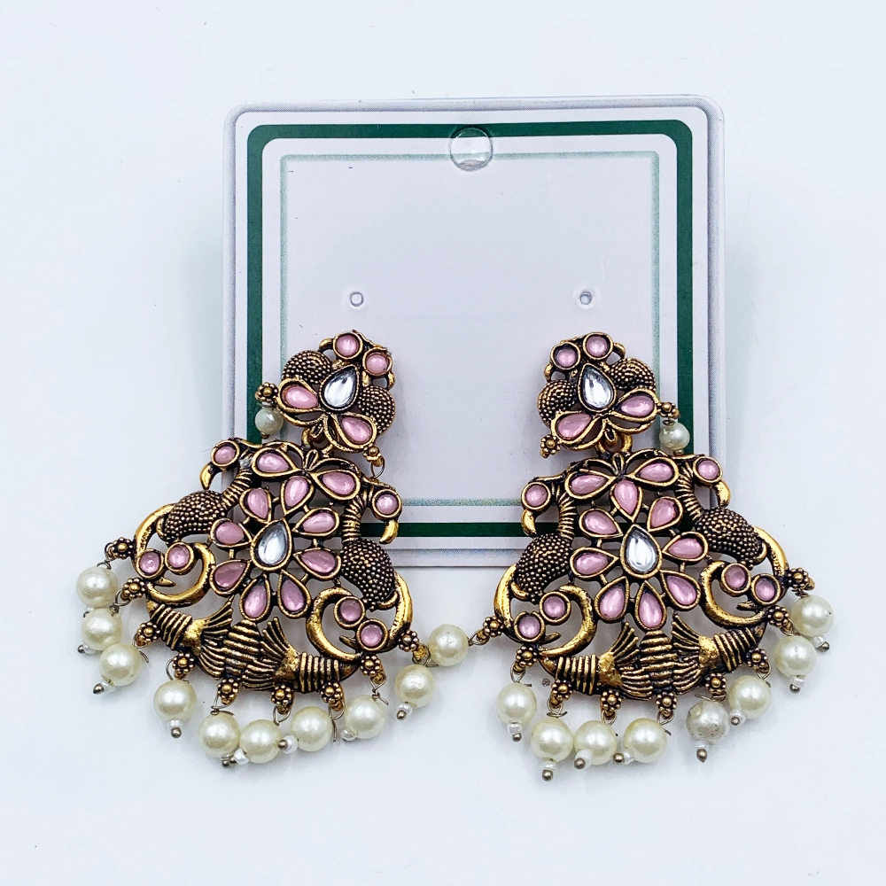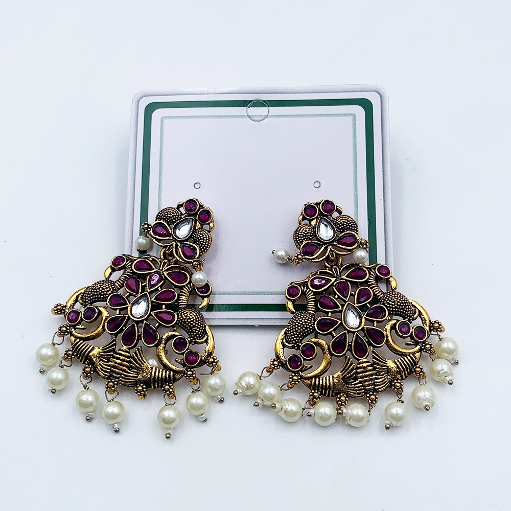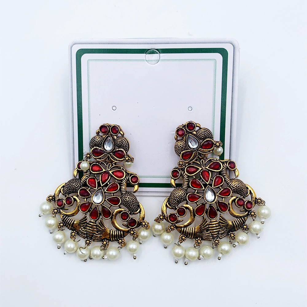 Arira Antique Gold finish green stone earings with small white pearls