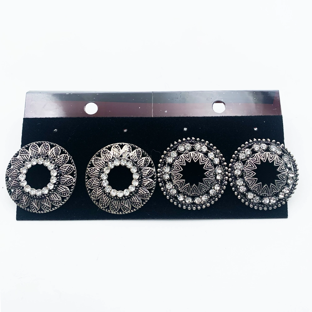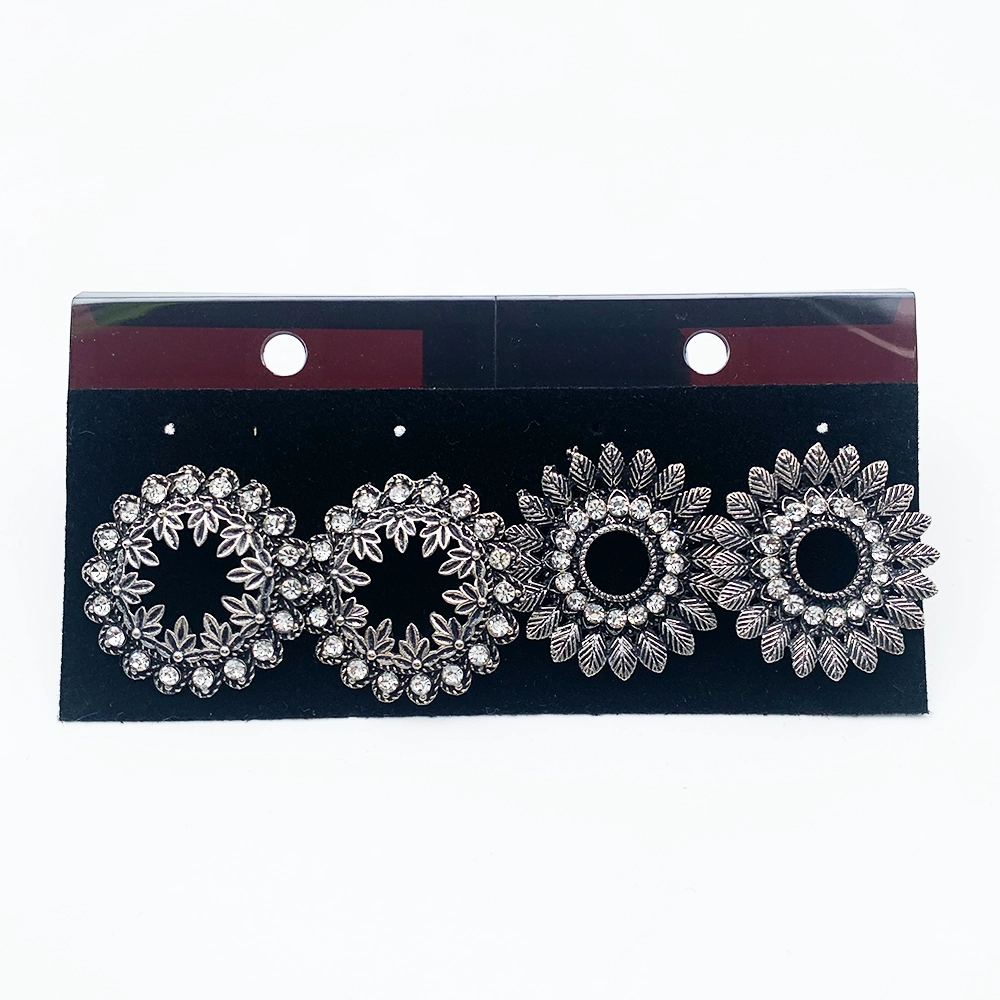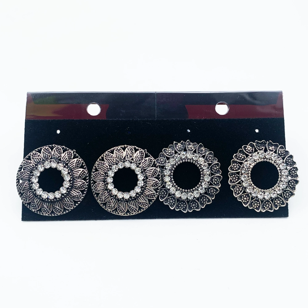 Arira elegant and classy silver oxidised stud earrings combo offer of 2 pairs