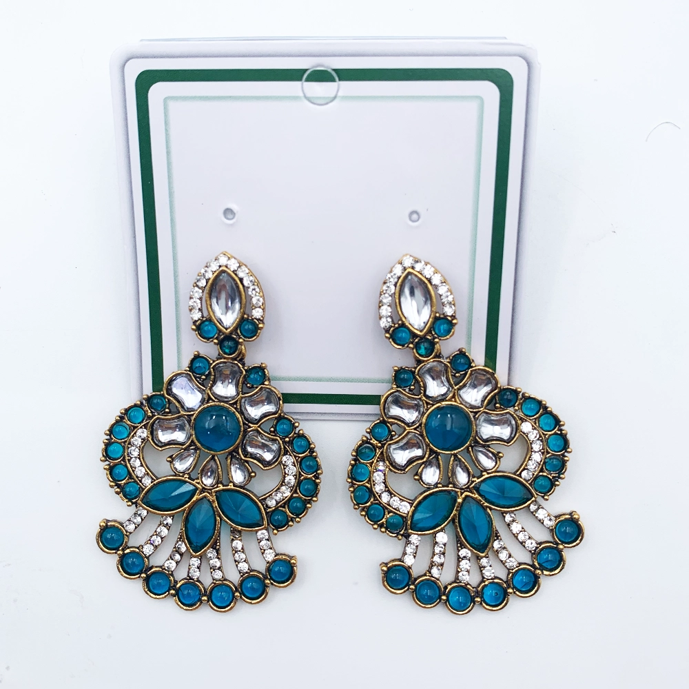 Arira Elegant Party Wear Kundan and Dark blue stone Earrings