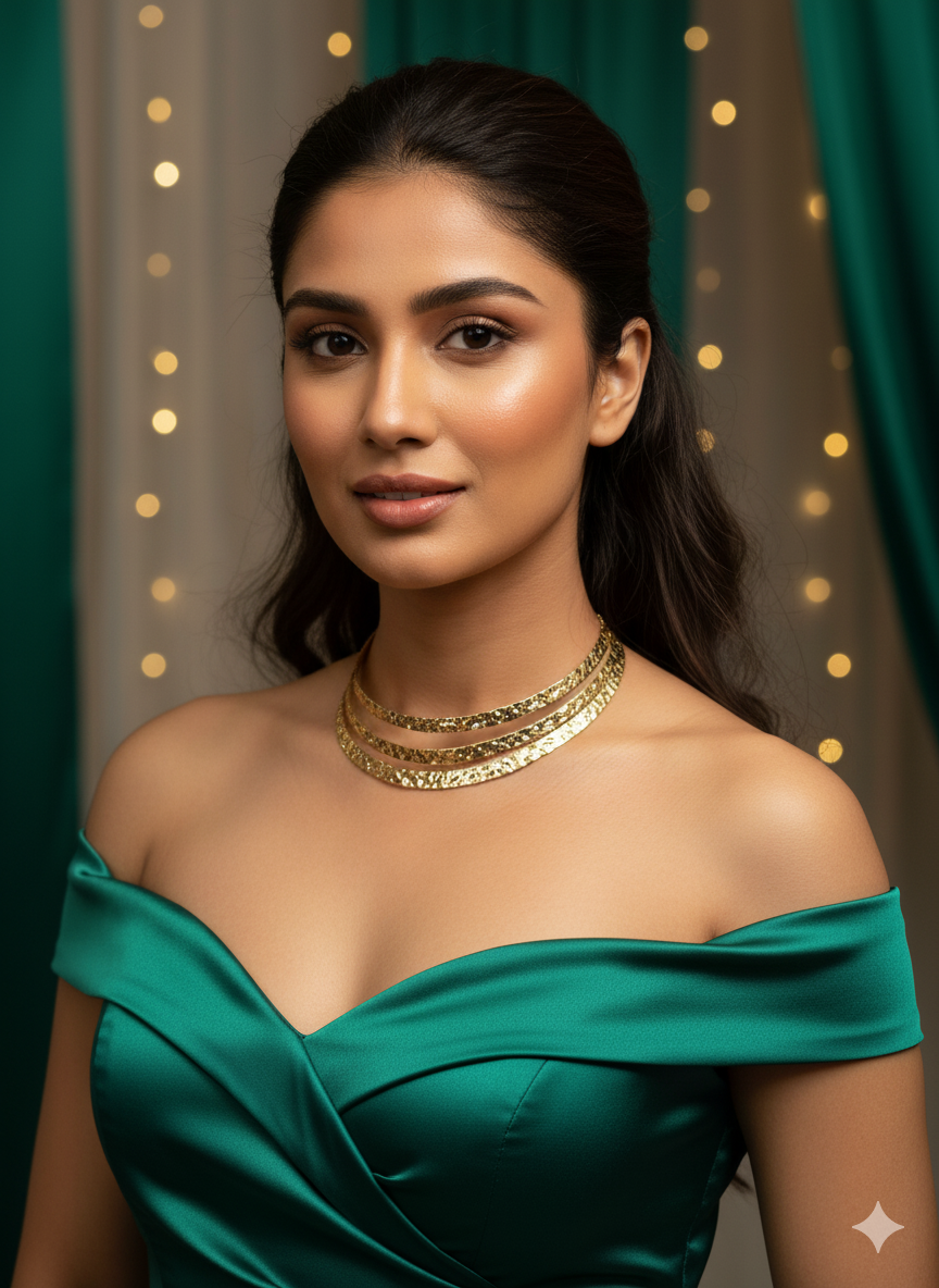 Arira dazzling and vibrant 3 layered golden neck piece