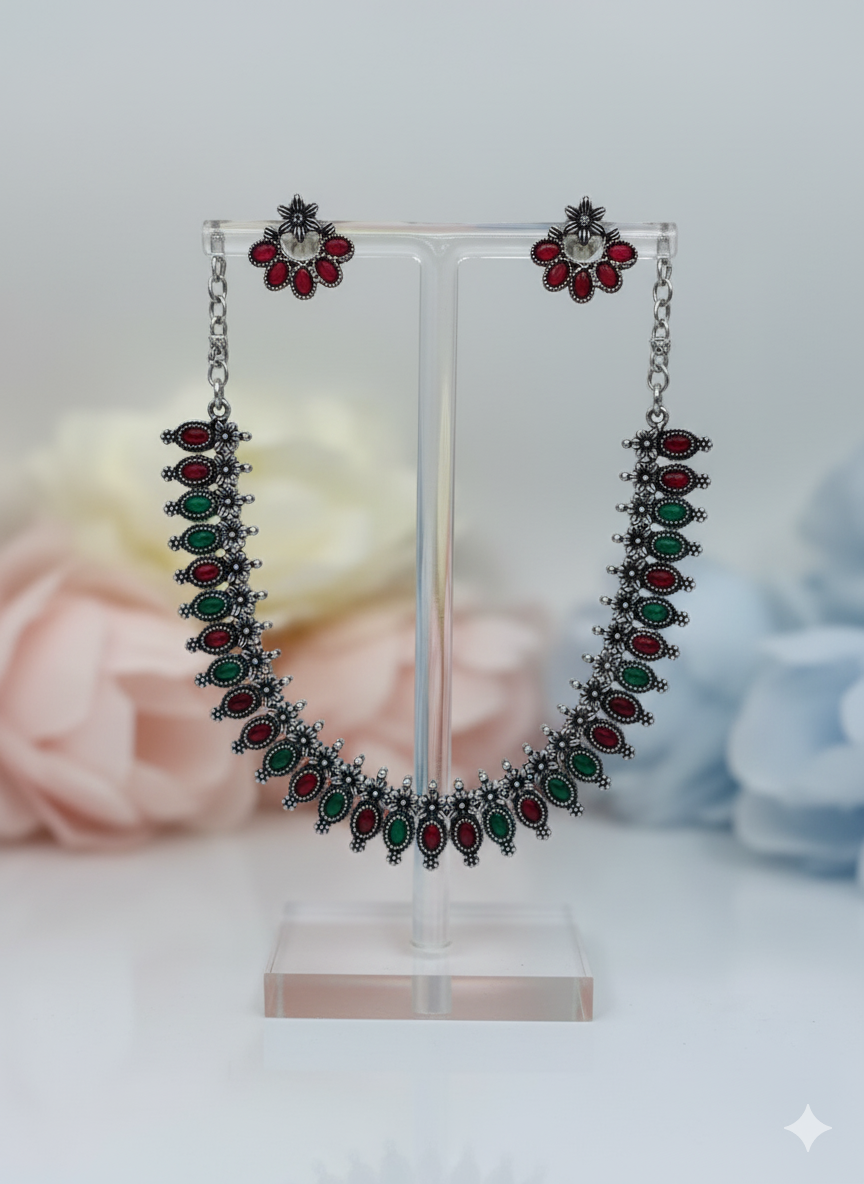 Arira Elegant Multicolour oxidised set with earrings