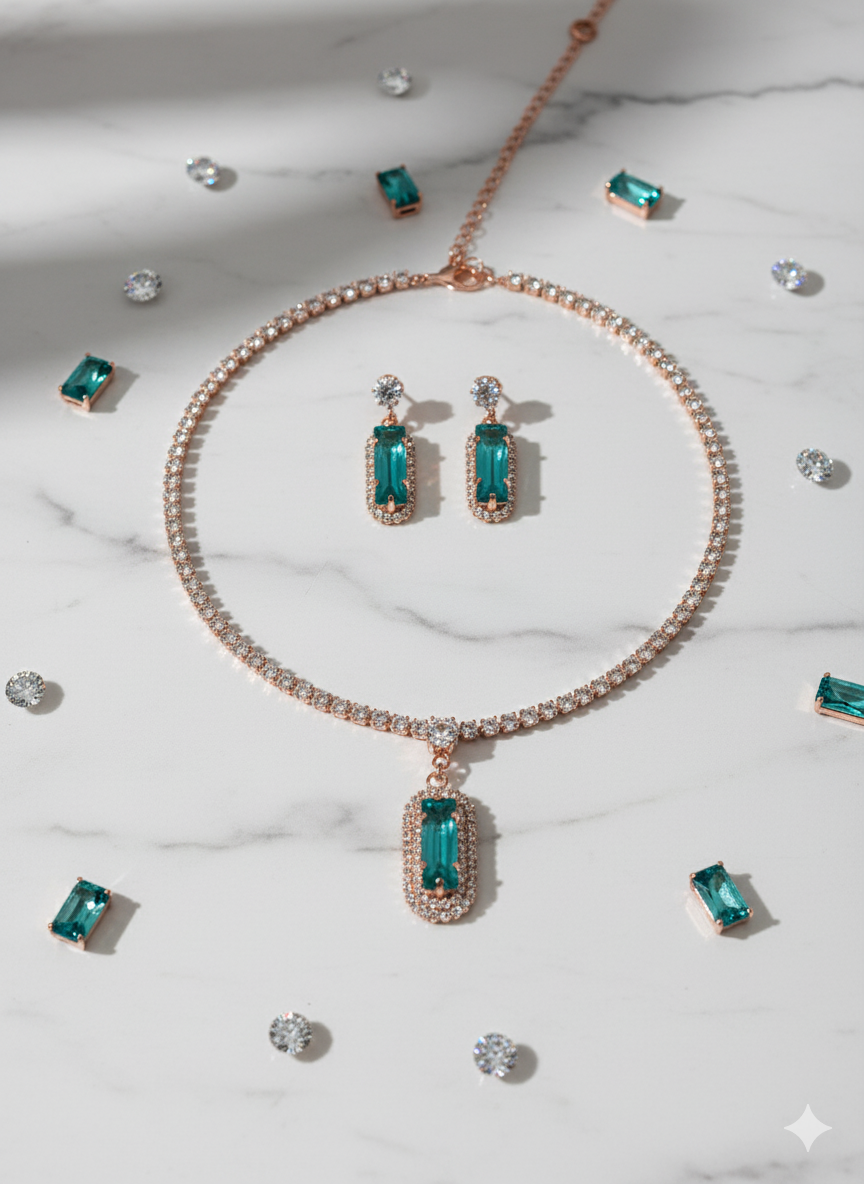Be the first to review “Arira latest and stylish green stone pendant set with earrings”