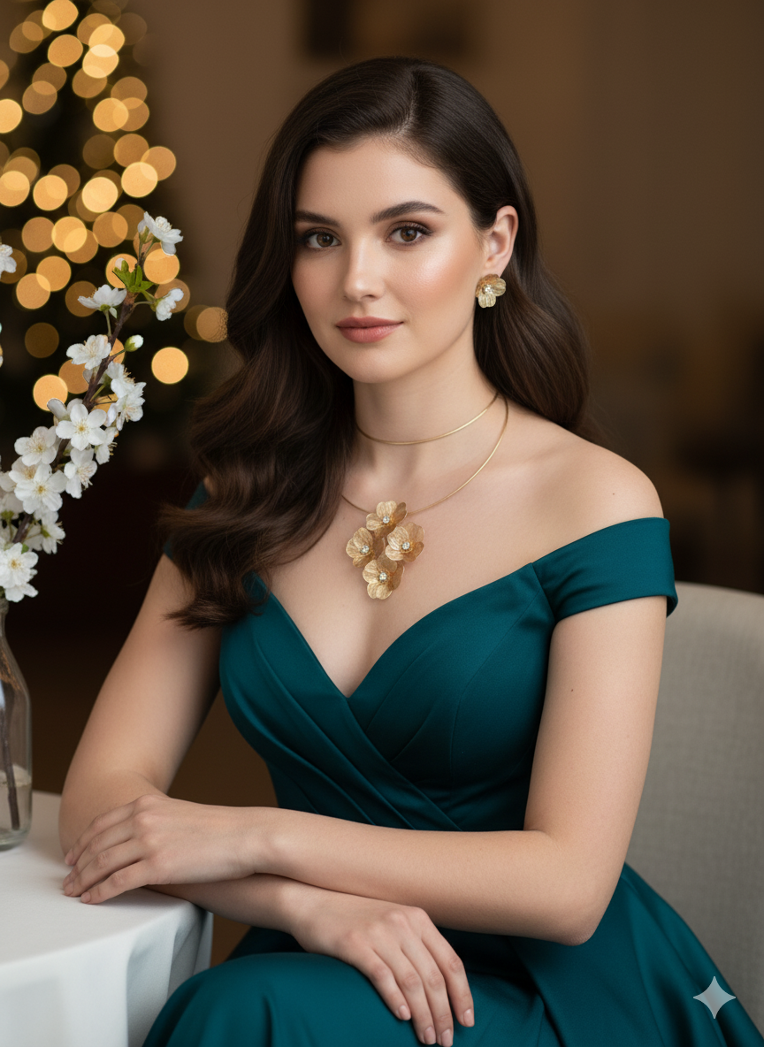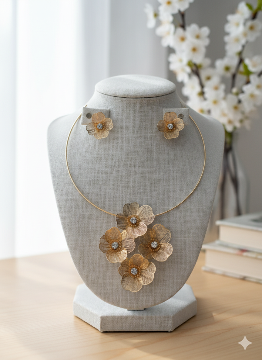 Arira Elegant and Classy golden flower neck piece 4 flower