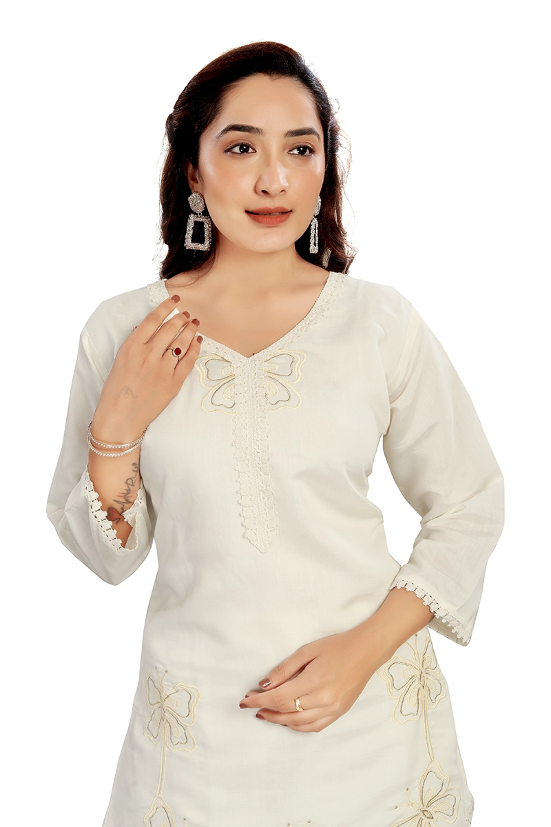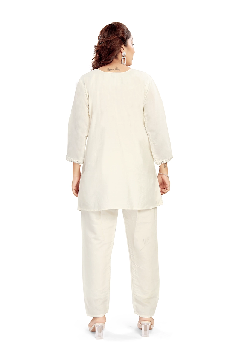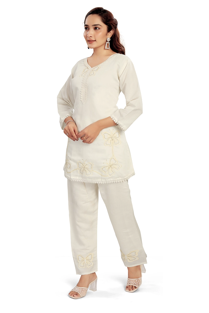 Arira designer embroiderd coord set in blended cotton silk with embroidery on pants