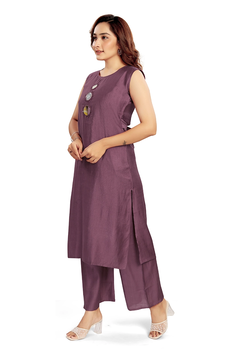 Arira Designer Wear Mirror Work Silk Kurta With Palazzo Pants