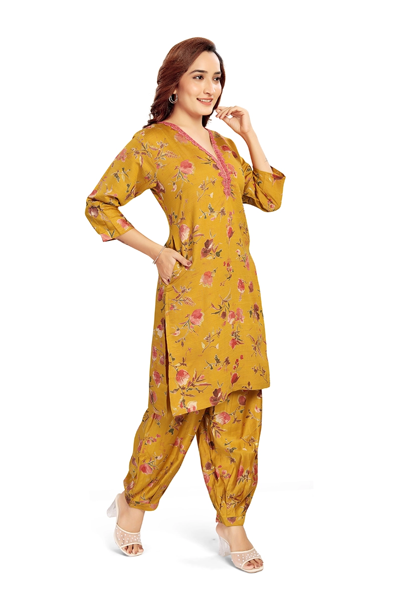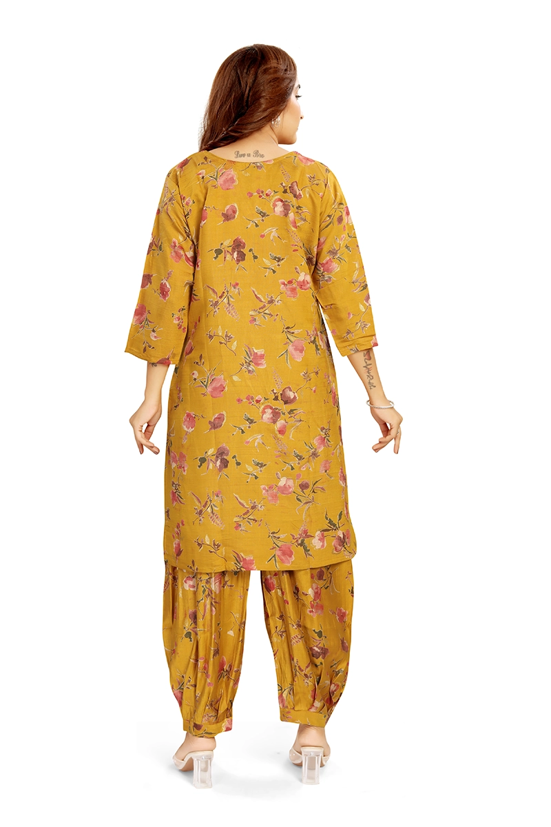 Arira Designer Wear Printed Kurta With Afgan Salwar In Blended Cotton Silk