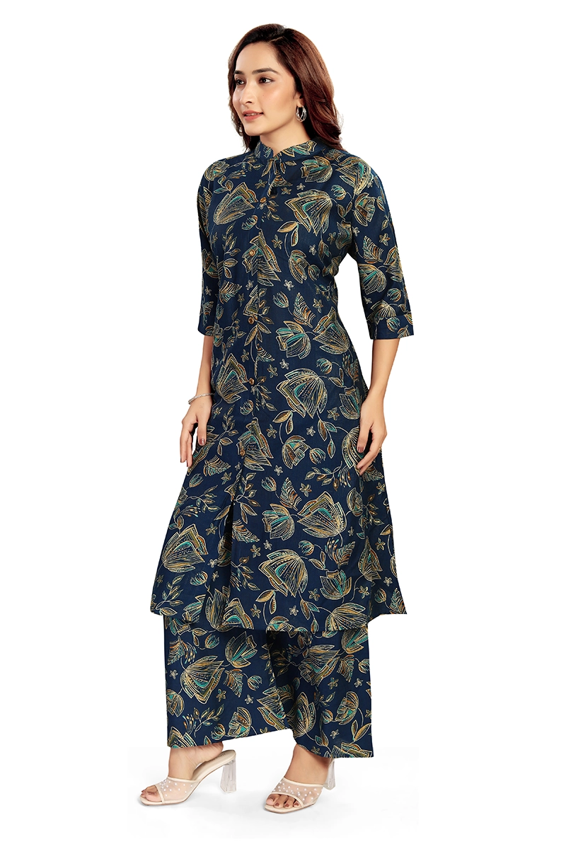 Arira Fancy Printed Kurta With Palazzo Pants In Blended Cotton Silk