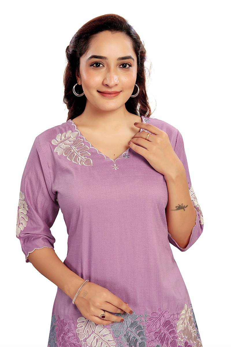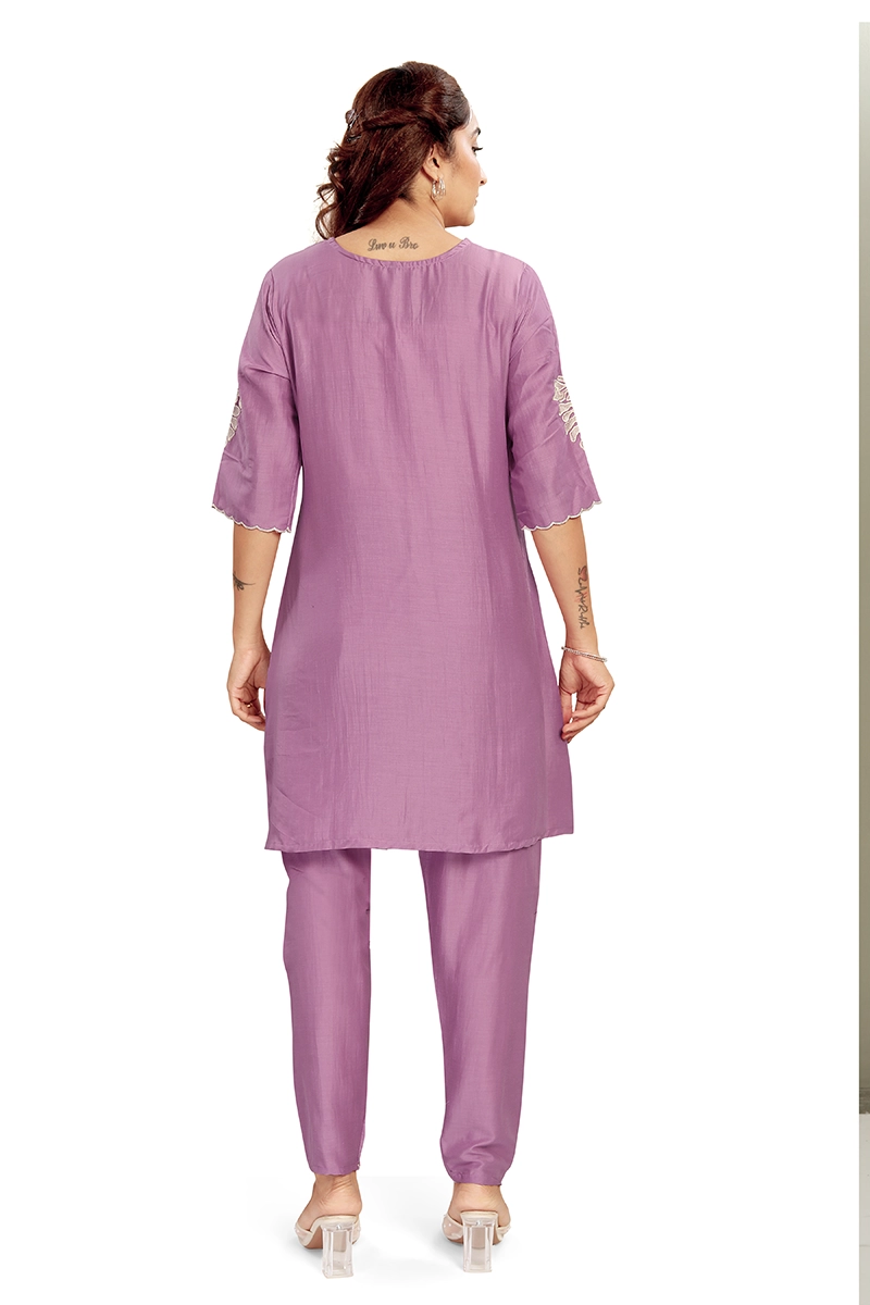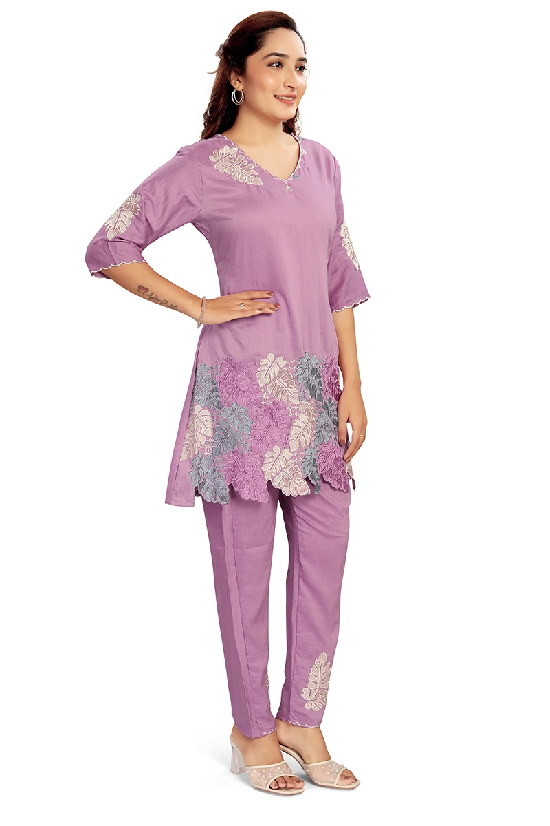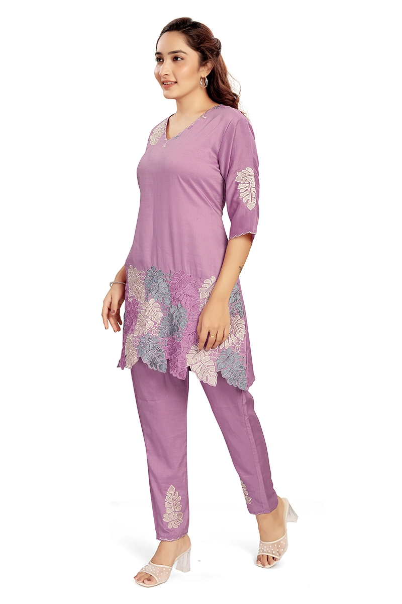 Arira Pink Coord set with cutwork embroidery on top and pants in blended cotton silk