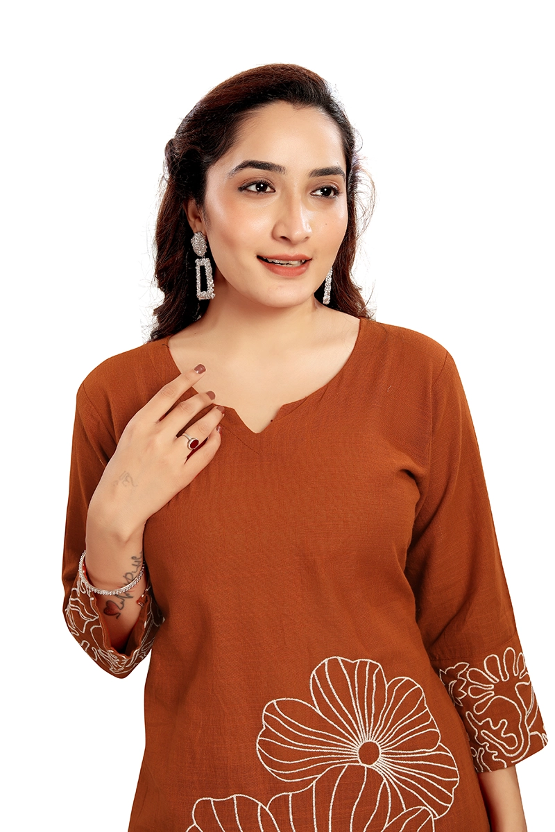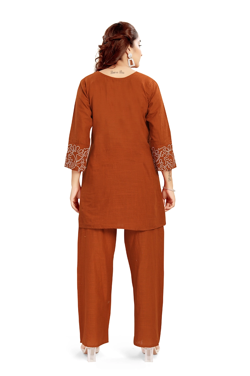 Arira Rust Embroiderd Coord Set In Rich Cotton Material