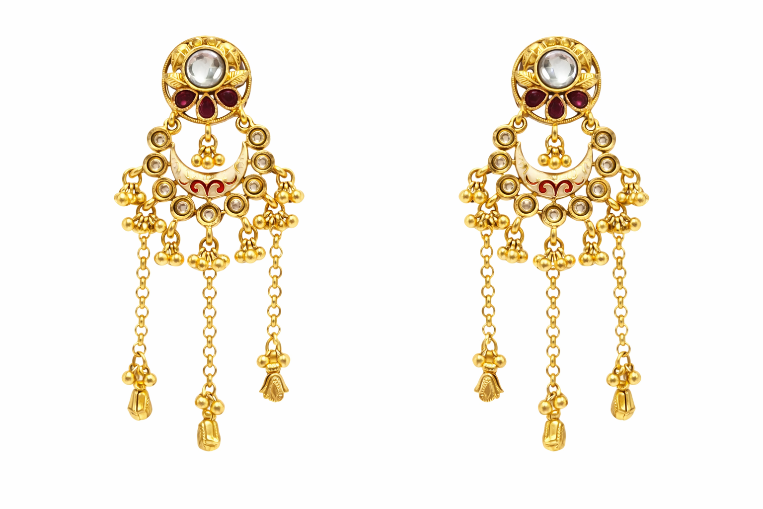 Arira Golden with White Stone Elegant and Beautiful Earrings with Ghungroo Latkan