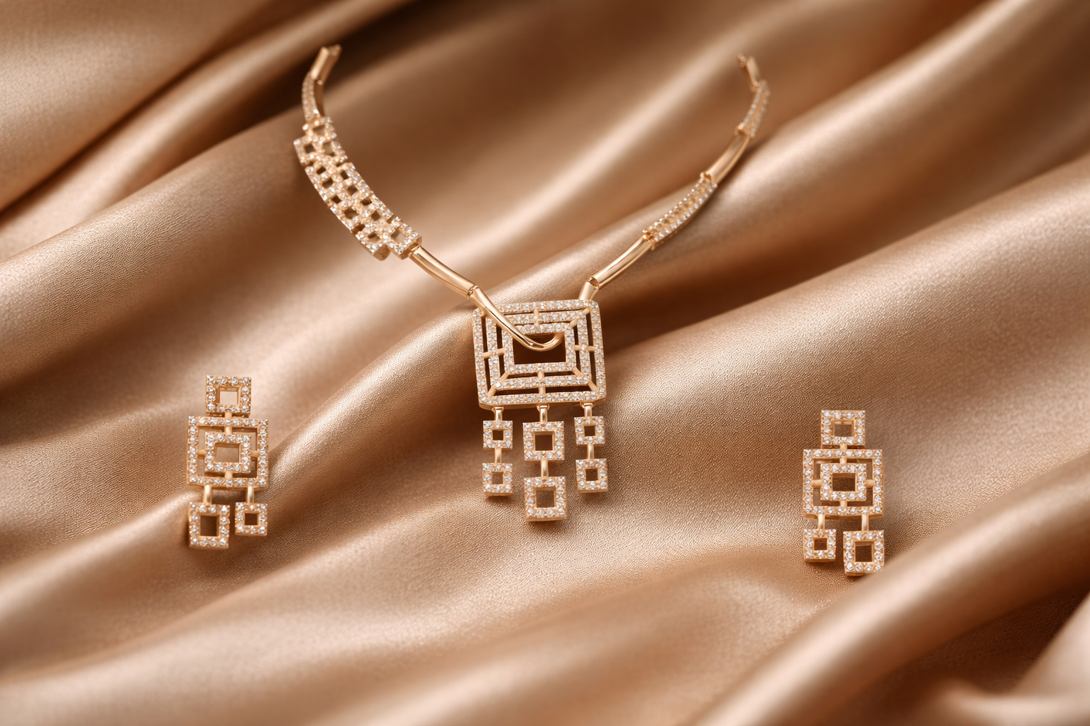 Arira Gold Finish Elegant and Beautiful Anti Tarnish American Diamond Necklace with Earrings