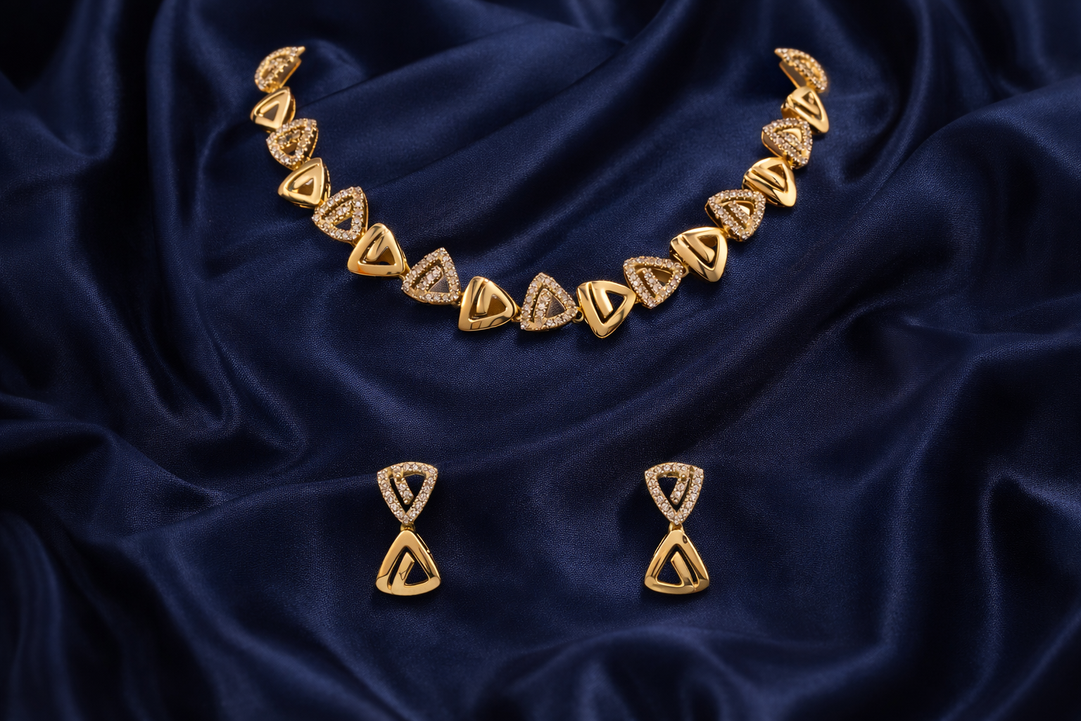 Arira Gold finish Stylish and Classy American Diamond Necklace Set with Earrings