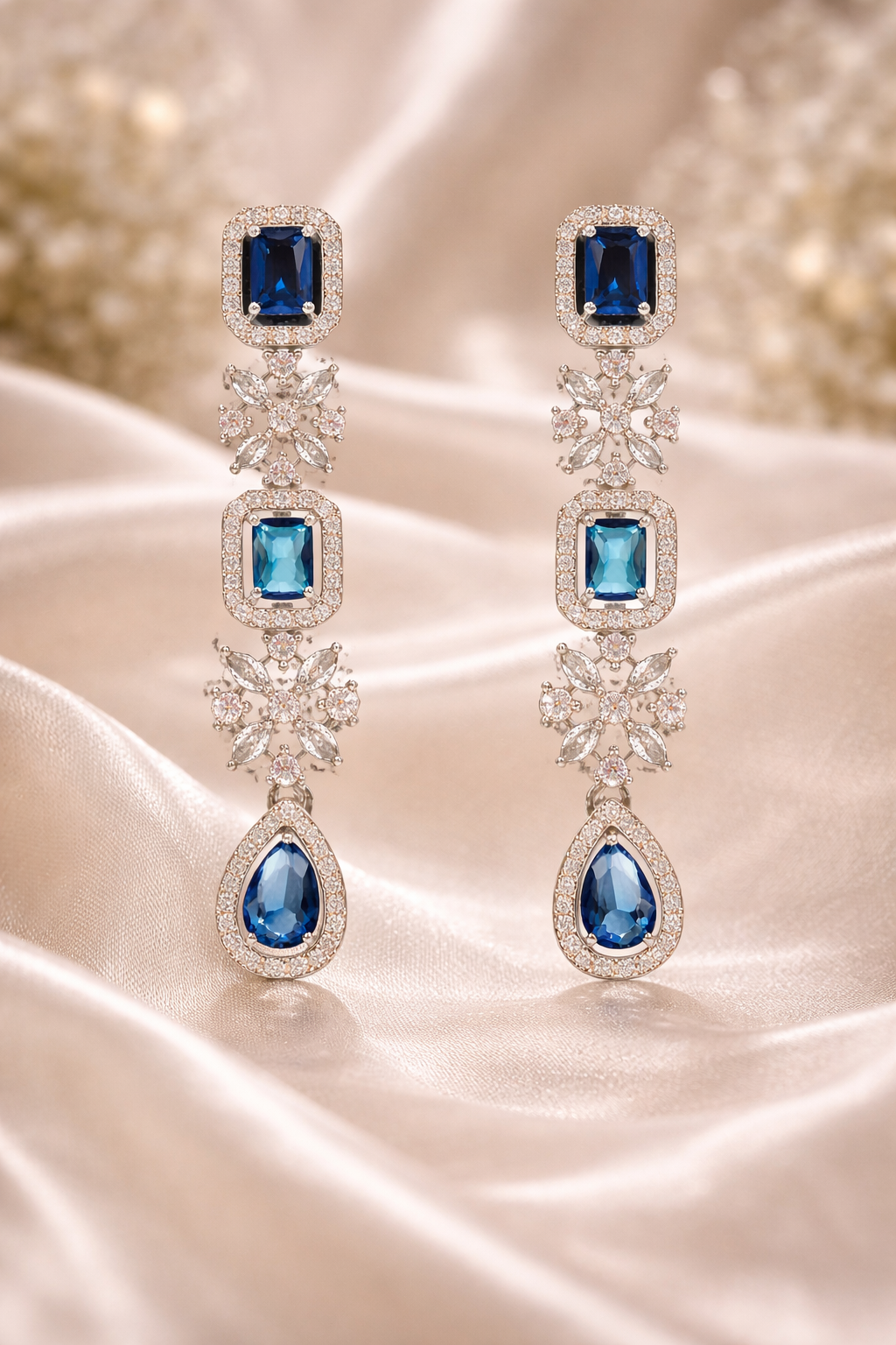 Arira Silver Finish Blue Stone Stylish and Classy American Diamond Earrings