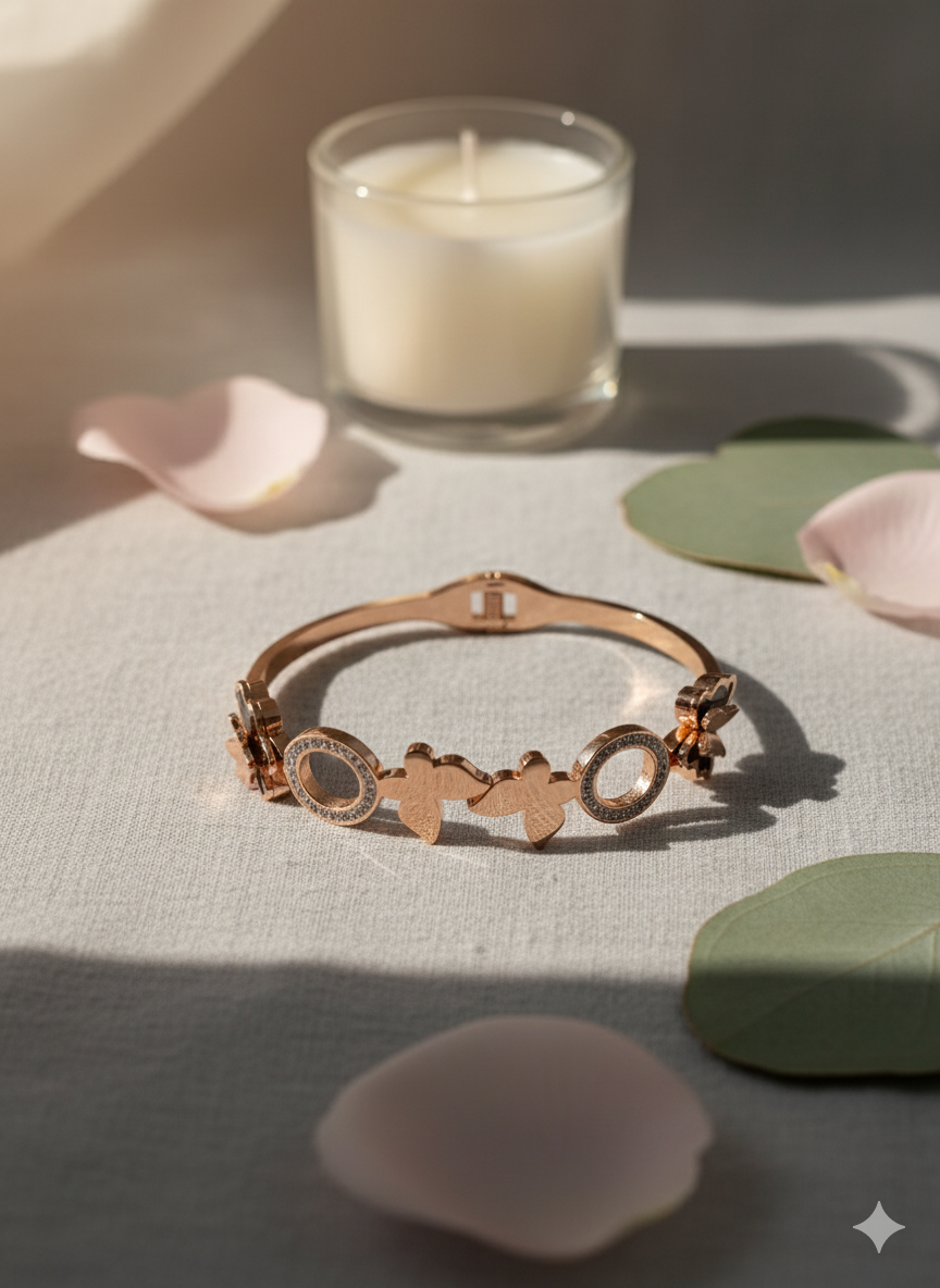 Original price was: ₹899.00.₹499.00Current price is: ₹499.00.Arira classy and unique butterfly design gold kada bracelet